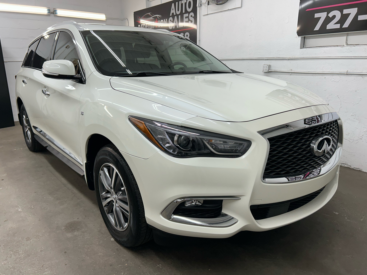 Majestic White 2020 INFINITI QX60 LUXE 3.5L V6 CVT FWD ***ON-SITE FINANCING AVAILABLE WHILE YOU WAIT***, ***90 DAYS / 3,000 MILE WARRANTY PROVIDED WITH EVERY PURCHASE*** ***CARFAX CERTIFIED DEALER***, ***BUY WITH CONFIDENCE FROM YOUR TRUSTED, LOCAL, FAMILY OWNED DEALER***, 13 Speakers, 1st & 2nd Row Unique Hour Glass Seat Quilting, 2nd & 3rd Row Moonroof w/Power Rear Sunshade, 3rd row seats: bench, 4-Wheel Disc Brakes, ABS brakes, Active Trace Control, Advanced Climate Control System, Air Conditioning, AM/FM radio: SiriusXM, Around View Monitor w/Moving Object Detection, Auto Side Dimming Mirrors, Automatic temperature control, Backup Collision Intervention (BCI), Blind Spot Intervention (BSI), Blind Spot Warning, Bodyside moldings, Bose CenterPoint 15-Speaker Sound System, Brake assist, Bumpers: body-color, Carpeted Floor Mats (4-Piece Set), CD player, Climate-Controlled Front Seats, Cross Bars, Delay-off headlights, Distance Control Assist, Driver door bin, Driver vanity mirror, ECO Pedal, EDITION 30 Essential Package, Electronic Stability Control, Four wheel independent suspension, Front & Rear Sonar Sensors (2FR/2RR), Front & Rear Sonar Sensors (4FR/4RR), Front anti-roll bar, Front Bucket Seats, Front Center Armrest w/Storage, Front dual zone A/C, Front fog lights, Front Pre-Crash Seatbelts, Front reading lights, Fully automatic headlights, Garage door transmitter: HomeLink, Heated 2nd-Row Seats, Heated Front Seats, Heated front seats, Heated steering wheel, High Beam Assist (HBA), Illuminated entry, INFINITI InTouch w/Navigation & InTouch Services, Intelligent Cruise Control (Full-Speed Range), Lane Departure Prevention (LDP), Lane Departure Warning System, Leather steering wheel, Leatherette Seat Trim, Literature Kit, Maple Interior Accents, Memory seat, Motion Activated Liftgate, Panic alarm, Passenger door bin, Power door mirrors, Power driver seat, Power moonroof, Power passenger seat, Power Return 3rd Row Seat Back, Power steering, Power windows, ProACTIVE Package, Radio data system, Radio: AM/FM/CD/MP3 w/Bose Premium Audio System, Rain-Sensing Front Windshield Wipers, Rear air conditioning, Rear Bumper Protector, Rear window defroster, Reclining 3rd row seat, Remote keyless entry, Roof rack: rails only, Security system, Sensory Package, Speed control, Speed-sensing steering, Splash Guards, Split folding rear seat, Spoiler, Steering wheel memory, Steering wheel mounted audio controls, Telescoping steering wheel, Tilt steering wheel, Traction control, Trip computer, Turn signal indicator mirrors, Voice Recognition for Navigation Functions, Welcome Lighting, Wheels: 20" 15-Spoke Aluminum-Alloy.